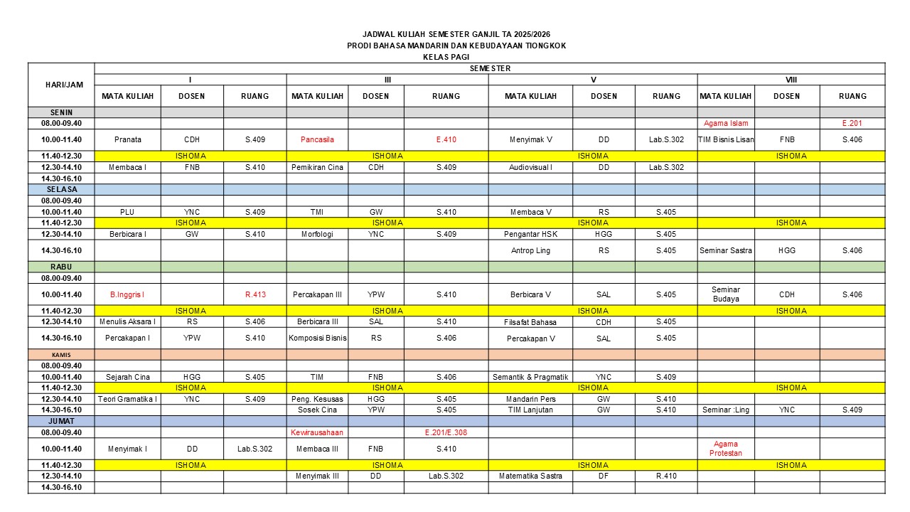 Ruang Kelas di Lantai 1, 3 dan 4 Gedung Fakultas Bahasa dan Budaya Unsada.