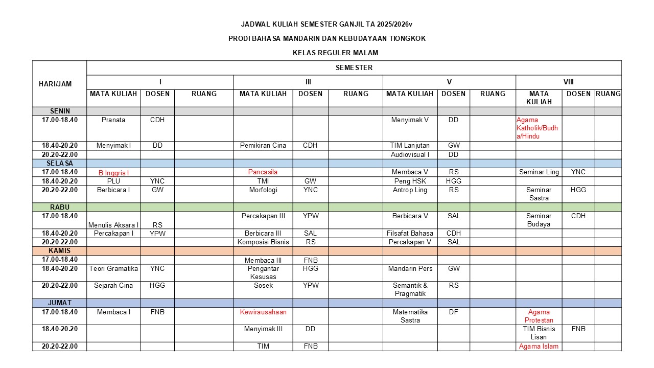 Kelas reguler malam dilaksanakan setiap hari senin – jumat